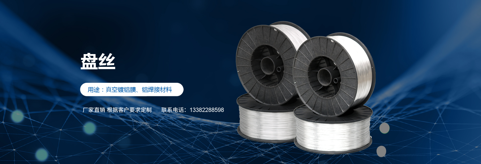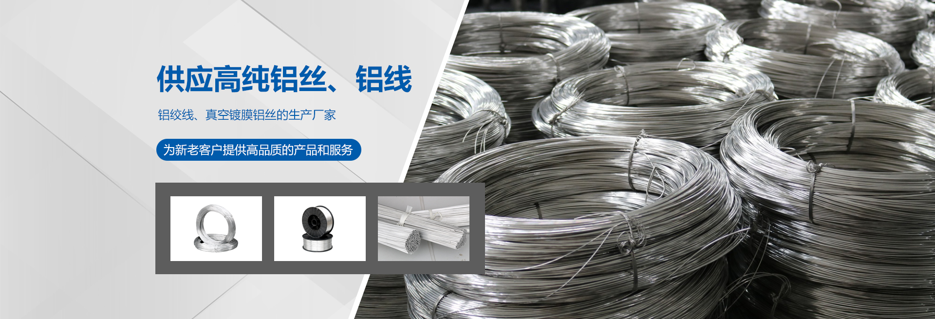 高純度鋁絲:公司主打產(chǎn)品。SGS認(rèn)證產(chǎn)品,適用于真空鍍鋁。可為客戶量身定做生產(chǎn)的各盤裝鋁絲、鋁直條。產(chǎn)品應(yīng)用領(lǐng)域十分廣泛,如:真空鍍鋁膜、電器儀表、電子、家電業(yè)、電線電纜業(yè)、建筑裝飾業(yè)、五金裝飾業(yè)、IT電腦業(yè)、廣告裝飾業(yè)、醫(yī)療器械、工藝制品、防腐制品(大型港口、橋梁、碼頭)、食品包裝容器、紡織服裝等。